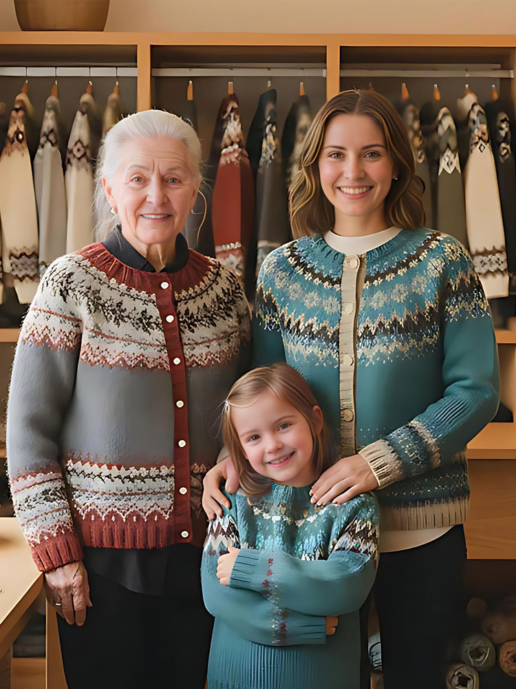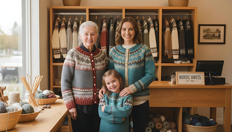 We grew up surrounded by those stories — evenings by the fire, sweaters passed down through family, and the comfort of something made with care. Today, as sisters and the third generation to carry on the legacy, we continue their work with modern fits, soft yarns, and timeless Nordic patterns.
