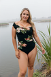 Design: Floral print with twist-front bodice, wide supportive straps, and a square back. Strategic ruching slims the waist and enhances an hourglass figure. Sleeves can be worn up or down.