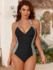 Design Features: V-Neck, Backless, Ruched Tummy Control, Color Block, Full Bottom Coverage, No Underwire, Removable Padded Cups, Drawstring Closure