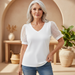 The Lumiera Elegant Puff-Sleeve Top adds a touch of sophistication to your everyday wardrobe. Featuring delicately designed sleeves and a flattering V-neckline, this top is your go-to piece for chic and versatile styling.